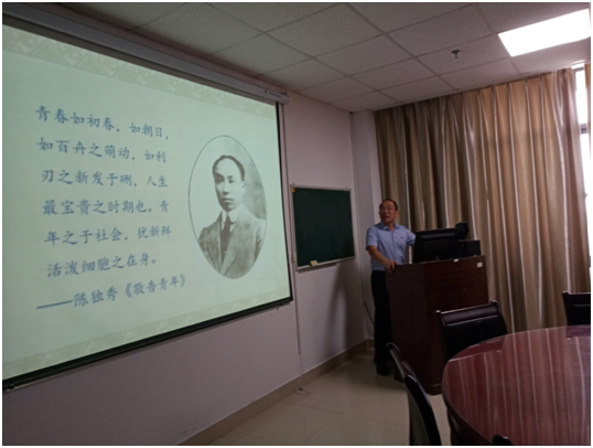 青年教师涂江波博士以《青年毛泽东的使命感与五四精神的当代启示》为题与学生们进行了交流,寄予同学们作为当代青年,要以“天将降大任于斯人”的使命感,树立远大理想,热爱伟大祖国,担当时代责任,勇立时代潮头,争做时代先锋,勇于砥砺奋斗,练就过硬本领,锤炼品德修为,追求更有高度、更有境界、更有品位的人生,在实现中国梦的实践中放飞青春梦想。