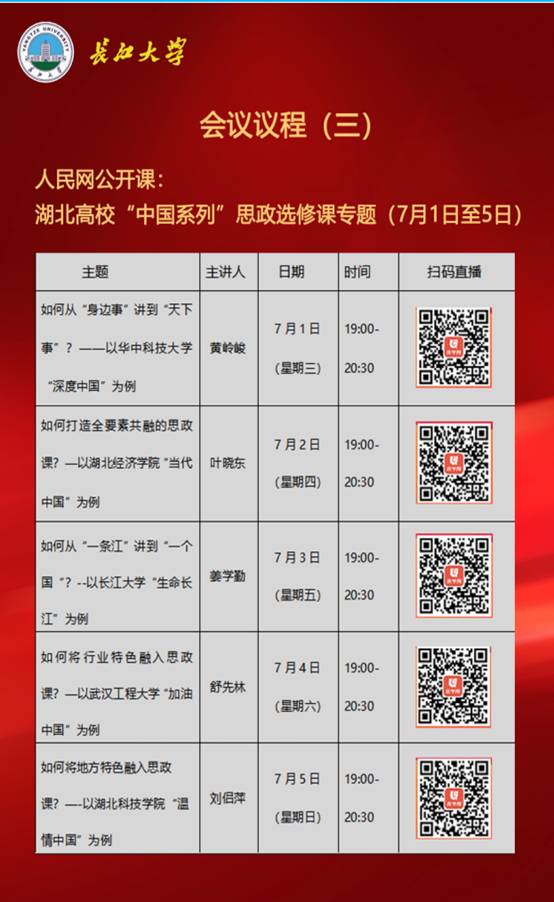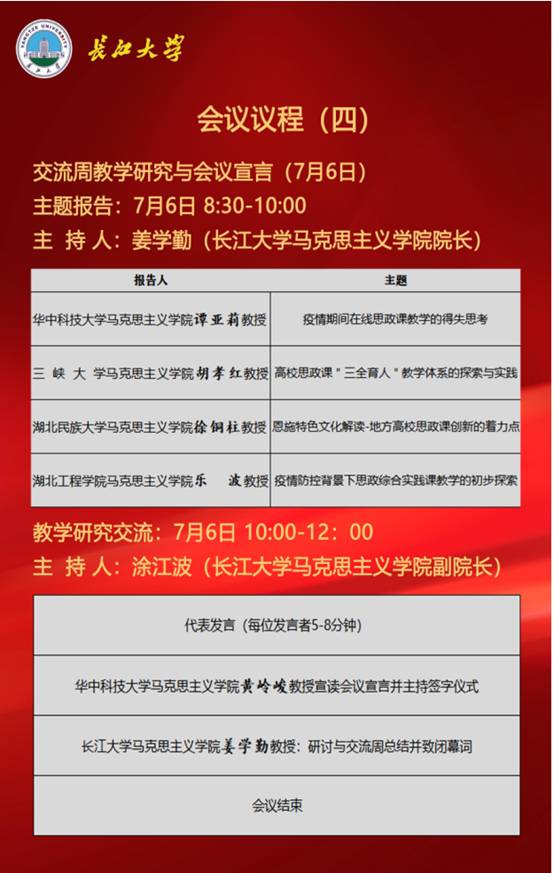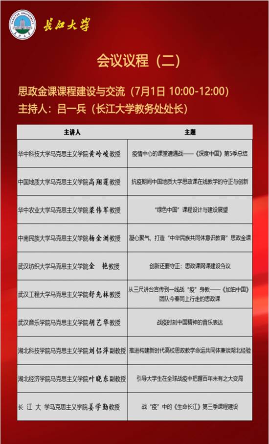 湖北省第二届新时代思政金课建设研讨及交流周会议流程