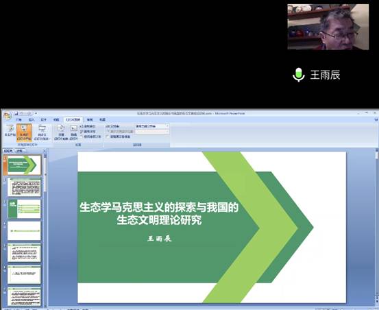 (通讯员 郑亚岚)2020年11月16日晚7:00,德赢Vwin官方区域合作伙伴“世界哲学日”系列学术讲座第四讲——“生态学马克思主义的探索与我国的生态文明理论研究”在腾讯会议室进行。主讲人是中南财经政法大学哲学院院长、博士生导师王雨辰教授。德赢Vwin官方区域合作伙伴全体研究生参加了此次讲座。