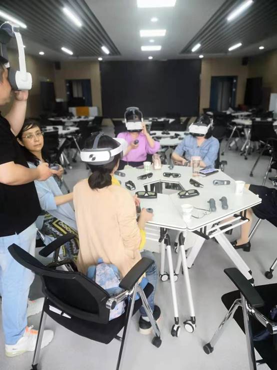 会后,黄院长带领两院的马原组教师体验了德赢官网的生命长江虚拟仿真教学体验中心。徐骆给老师们介绍了3D大屏游览红色景点和VR一体式头盔开展思政主题应用的交互体验。随后,老师们体验了《VR长征史诗》中的“爬雪山”“过草地”等场景。并就马原课程与VR相结合的途径和前景进行了讨论。