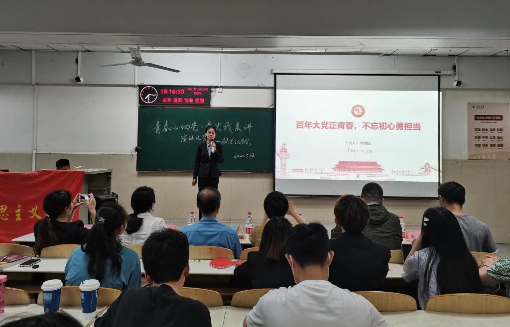 主持人宣读比赛规则和奖项设置之后,比赛正式开始,选手们依次上台演讲。四号选手宋沅泊的《党史立心,吃苦立命》以王耀武和胡天桃对话的形式再现红军长征艰难片段,呼吁青年培养吃苦精神,走出舒适圈。八号选手费思思的《生为共产党宣言生,死也要为他死》向我们阐述了《共产党宣言》于黑暗旧中国的重大意义。十一号选手李晓媛的《凝聚榜样力量,彰显青年担当》让我们认识了深藏功与名,既是镜子也是标杆的人民英雄张富清。十二号选手董欣楠的《党是我心中的明星》用一个个实例向我们证明只有中国共产党才能带领中国从一个成功走向另一个成功,由一个辉煌续写另一个辉煌。
