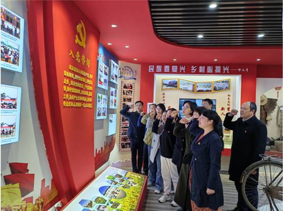 在枪杆村党员群众服务中心,图书馆馆长王红松和德赢Vwin官方区域合作伙伴党委书记刘小燕共同为该村延安精神教育馆捐赠了近百册党史党建类图书。随后,全体参学支部党员在该村原党支部书记邢昌焕与村“两委”班子成员的带领和讲解下参观了枪杆村延安精神教育馆,沉浸式学习延安精神、农耕文明史、村发展史,重温入党誓词。并围绕“大力弘扬延安精神,党建引领村居高质量发展,着力推进乡村振兴”开展了专题交流研讨。随后,还实地参观了枪杆村特色村组以及荆州市农甜农业发展有限公司,调研学习智慧农业、基层治理、美丽乡村建设等成功经验。