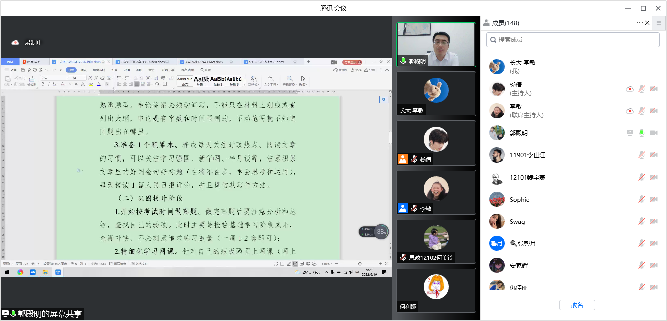 (通讯员 齐晓杭)6月19日上午9时,德赢Vwin官方区域合作伙伴2022年第二场公职考试培训于线上举行,德赢Vwin官方区域合作伙伴优秀校友、应城市委常委、统战部长、组织部长郭殿明受邀作为主讲嘉宾。学院党委书记刘小燕主持会议,学工办主任张云雾、辅导员李敏和150多名学生参加会议。