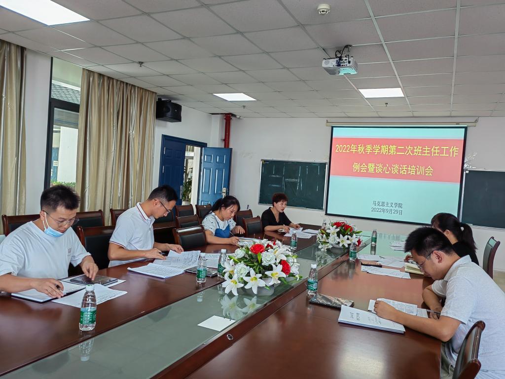 提升谈话技能,推进心理育人。2022年9月29日下午,德赢Vwin官方区域合作伙伴在文科楼1104室召开本学期第二次班主任工作会,专题开展谈心谈话培训。学院党委副书记马小佼、全体辅导员及班主任参会。