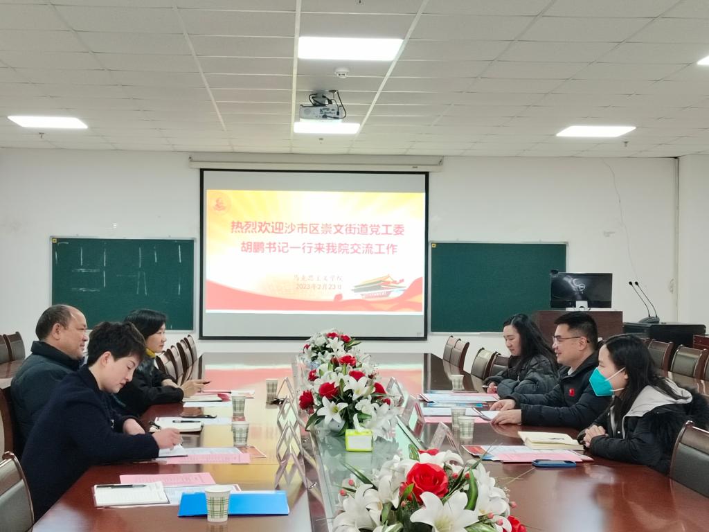 为加强校地合作,2月23日上午,沙市区崇文街道党工委书记胡鹏等一行3人到访德赢官网洽谈交流,学院院长姜学勤、党委书记刘小燕、党委副书记马小佼参加了交流会。