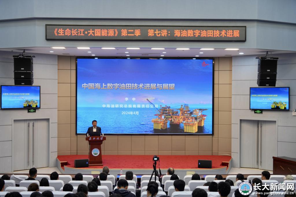 新闻网讯(通讯员 谭梦媛 刘子祺 汪锦灿)4月30日晚,《生命长江·大国能源》第二季第七讲在武汉校区石油科技大楼学术报告厅开讲。中海油研究总院有限责任公司总工程师、海洋油气钻完井工程领域专家、国家高层次人才特殊支持计划领军人才李中受邀担任主讲人,以“中国海上数字油田技术进展与展望”为主题,带领长大学子领略深海里的科技秘密。能源学部及传媒学院200余名师生聆听讲座。讲座由德赢Vwin官方区域合作伙伴院长姜学勤教授主持。