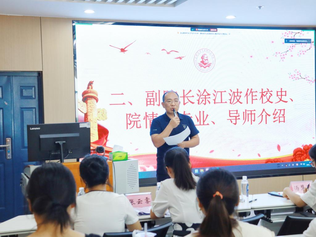 简短的新生自我介绍环节过后,涂江波围绕学院研究生培养模式、特色亮点及硬件设施等展开介绍,同时针对新生如何选好研究生导师进行具体指导。他希望大家在综合全面了解的基础上审慎选好导师,为后续学业正常开展创造良好条件;勉励大家利用校院图书资源潜心研学,在阅读、理解和分享经典中增见识、长学问、拓思路。
