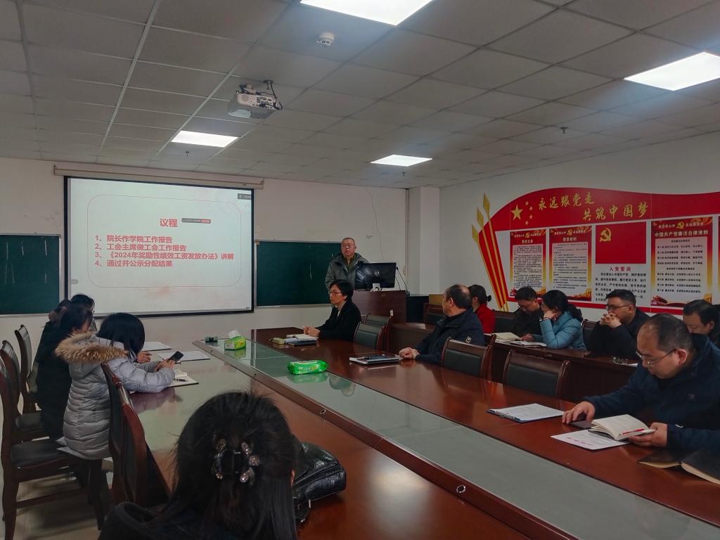 随后,学院党委书记刘小燕对《德赢Vwin官方区域合作伙伴2024年度奖励性绩效工资发放办法》作了详细解读,强调了办法修订的背景、过程以及分配制度改革导向,办公室主任徐先荣讲解了工作量计算方法,通报了分配情况。