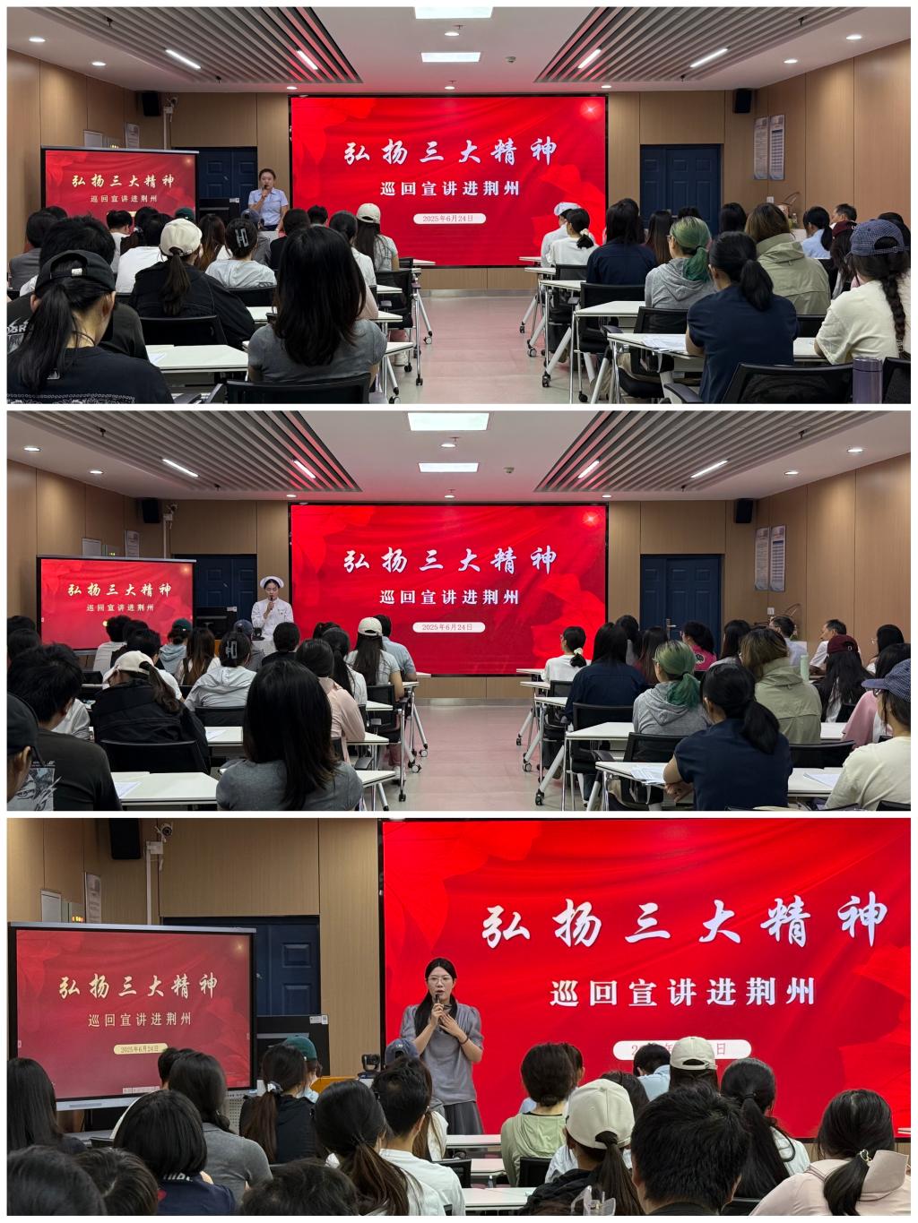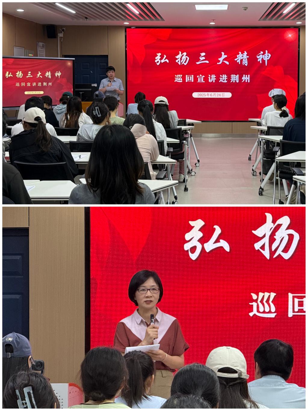 弘扬大别山精神、抗洪精神、抗疫精神,传承和赓续红色血脉。6月24日,由省委宣传部、省委讲师团组建的巡回宣讲小分队走进荆州德赢Vwin官方区域合作伙伴马克思学院,面向师生开展弘扬“三大精神”(大别山精神、抗洪精神、抗疫精神)宣讲。