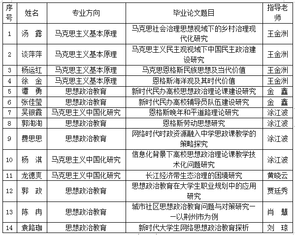 答辩研究生(序号即为答辩顺序,组长黎明志):