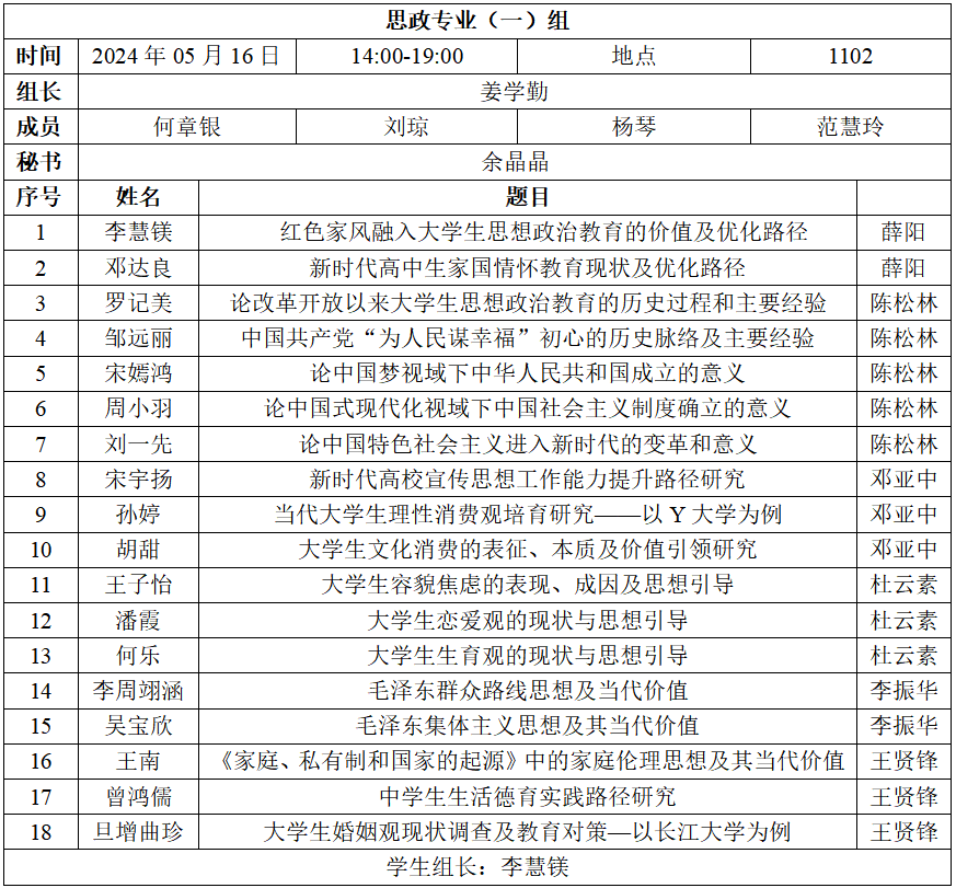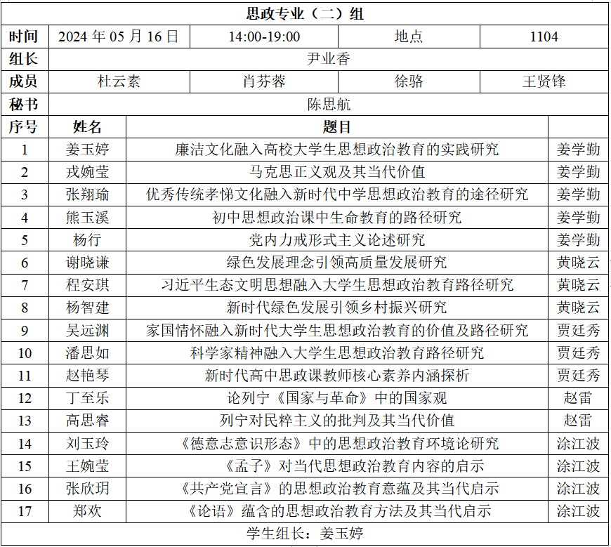 2. 每小组安排半天答辩,学生人数应在15名以内;安排全天答辩,学生人数应在30名以内。