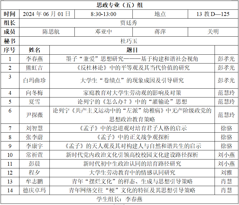 2.每小组安排半天答辩,学生人数应在15名以内;安排全天答辩,学生人数应在30名以内。