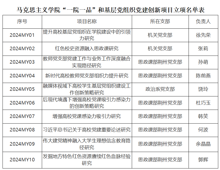 根据学校《关于申报2024年度“一院一品”和基层党组织党建创新项目的通知》要求,德赢官网7个党支部组织推荐申报了14个党建研究项目。经学校评审,共有1个重点项目、3个一般项目获评立项。经学院党委会研究决定,将校级未立项的10个项目列为院级党建项目予以立项。现将名单公示如下: