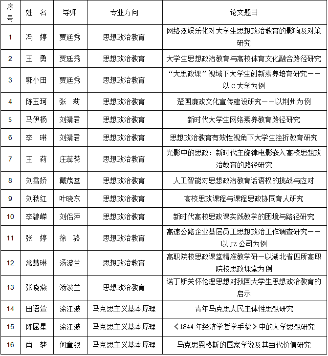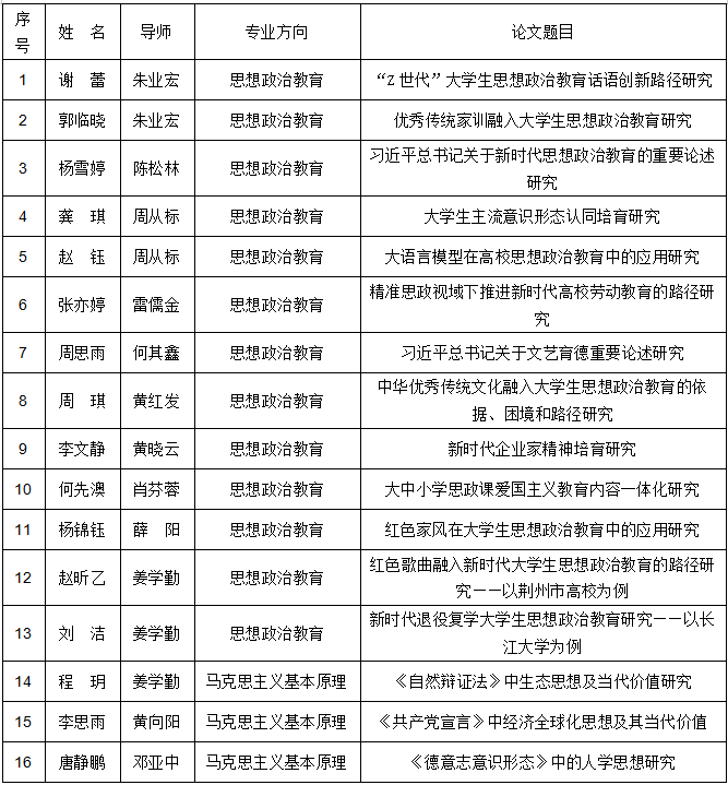 答辩研究生(序号即为答辩顺序,组长谢蕾):