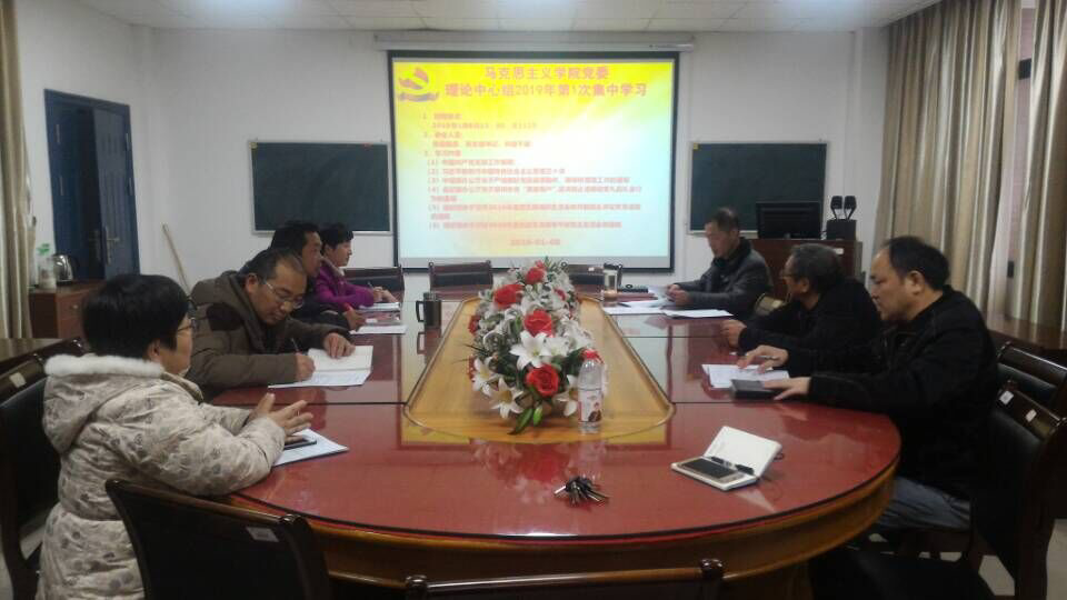 2019年1月8日,德赢Vwin官方区域合作伙伴党委理论学习中心组在文科楼1125室组织了2019年首次集中学习。党委委员、各支部书记、科级以上干部参加了理论中心组学习,会议由党总支书记吴智勇主持。