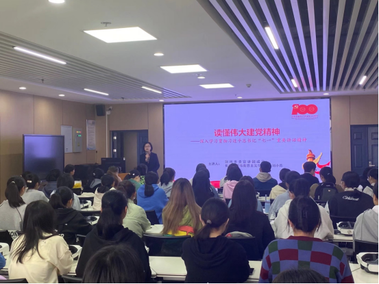 为深入学习贯彻习近平总书记在庆祝中国共产党成立100周年大会上的重要讲话精神,持续推动党史学习教育走深走实,积极引导广大学生传承红色基因,赓续百年奋斗,2021年11月2日下午,德赢Vwin官方区域合作伙伴党委书记刘小燕在文科楼1008室作学习贯彻习近平总书记“七一”重要讲话精神专题党课。