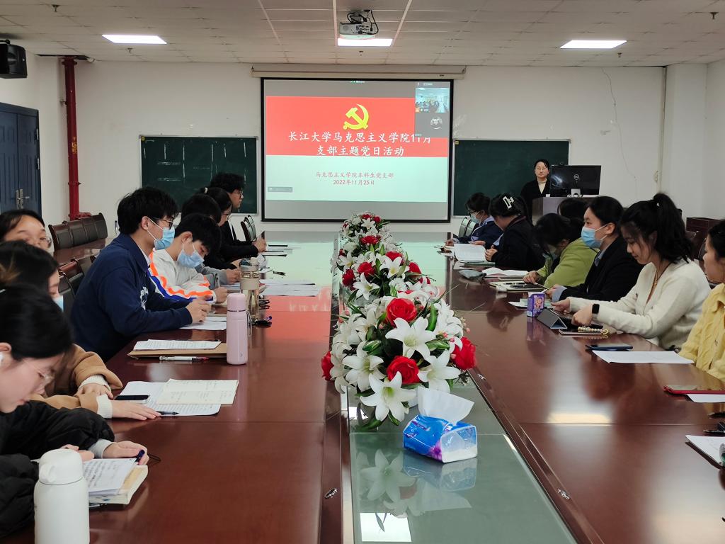 11月25日下午4时30分,德赢Vwin官方区域合作伙伴本科生党支部齐聚文科楼1104室,共同学习研讨党的二十大精神,本科生党支部书记马小佼进行党的二十大报告微党课授课。