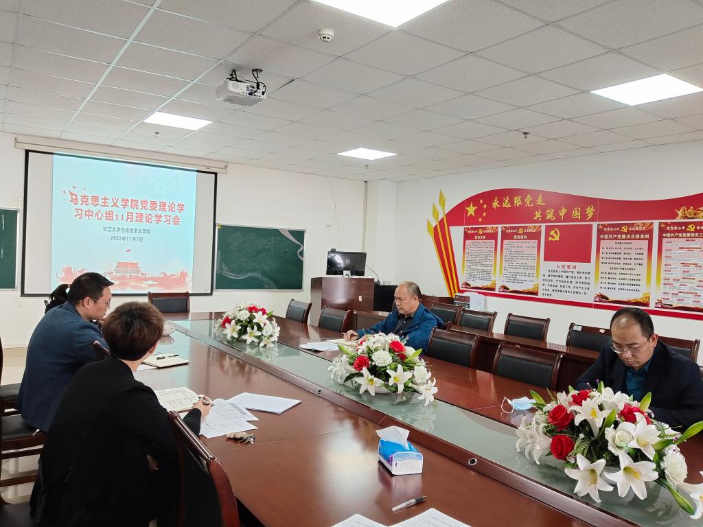 11月7日下午,德赢Vwin官方区域合作伙伴党委理论学习中心组在文科楼1104室组织11月份政治理论学习活动,会议由学院分党委副书记马小佼主持。