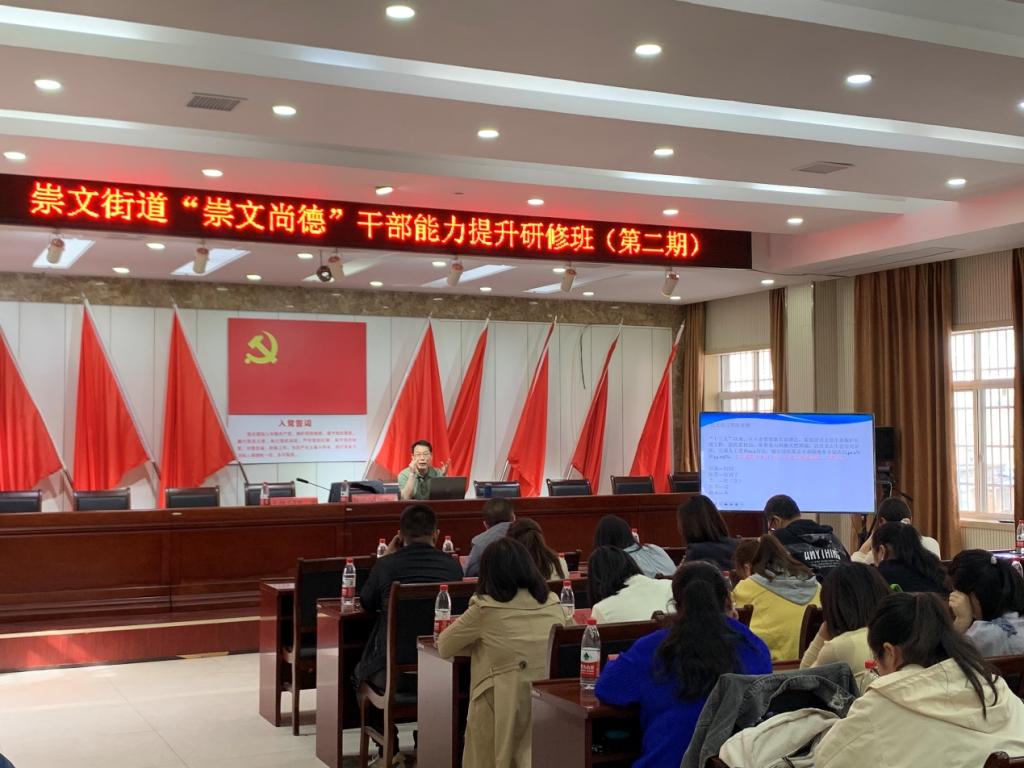 (通讯员 周思雨 谢蕾)4月14日,沙市区崇文街道“崇文尚德”干部能力提升研修班第二期在崇文街道办事处正式开讲,主讲人分别为德赢Vwin官方区域合作伙伴教授贾廷秀和人文与新媒体学院院长何世龙,沙市区崇文街道60余人参加了此次培训。