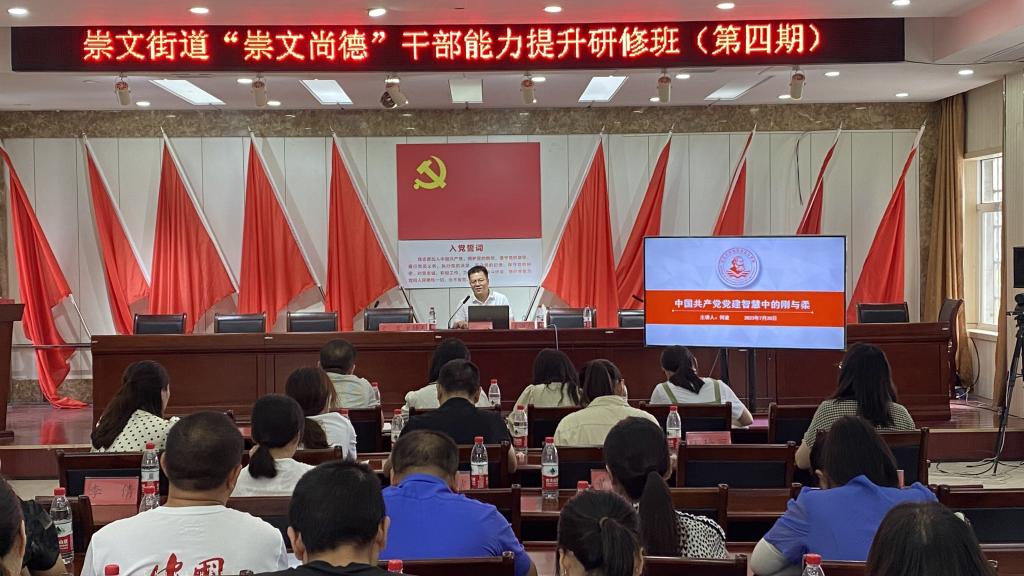 (通讯员:杨申)7月20日,沙市区崇文街道“崇文尚德”干部能力提升研修班第四期在崇文街道办事处开讲,主讲人分别为德赢Vwin官方区域合作伙伴党委书记刘小燕和青年教师何波,沙市区崇文街道60余人参加了本次培训。
