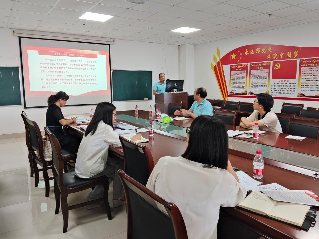 在集中学习环节,汤慧珍同志领学了组织纪律,涂江波同志领学了工作纪律和生活纪律。两位同志认真备课,通过精美PPT展示,向与会同志详细讲解了修订前后的纪律条文对比,修订的主旨要义,如何贯彻执行等。