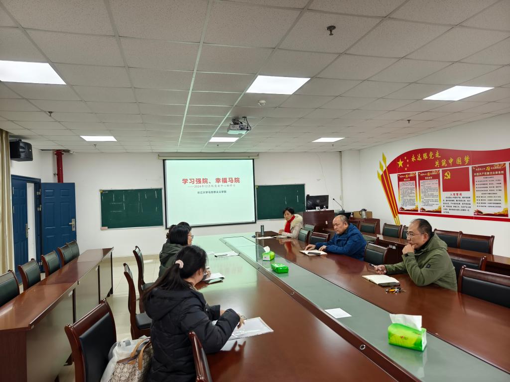 姜学勤在发言中指出,我们要进一步深入学习贯彻习近平总书记重要指示精神,始终坚持和加强党的全面领导,坚持铸魂育人、守正创新、系统谋划,在讲好讲深讲透关键课程、加强教育教学改革,加强教研投入、建强师资队伍,坚持夯基固本、开创学生培养新模式,发挥学科优势、扎实推进党的创新理论研究宣传阐释等方面持续聚焦发力,争创全省重点德赢Vwin官方区域合作伙伴,推进学院事业高质量发展。