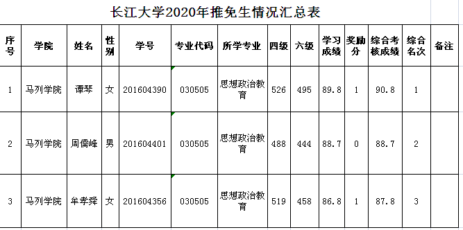 经学生本人申请、学院推免生遴选工作小组考核,现将德赢官网2020届优秀应届本科毕业生免试攻读硕士学位研究生名单予以公示。公示时间:2019年9月19日-2019年9月21日,公示期间学生如有异议可向学院、教务处反映,如有违纪,可向学校纪委举报。联系电话:学院(0716)8060275,教务处(0716)8060580,学校纪委(0716)8060993。