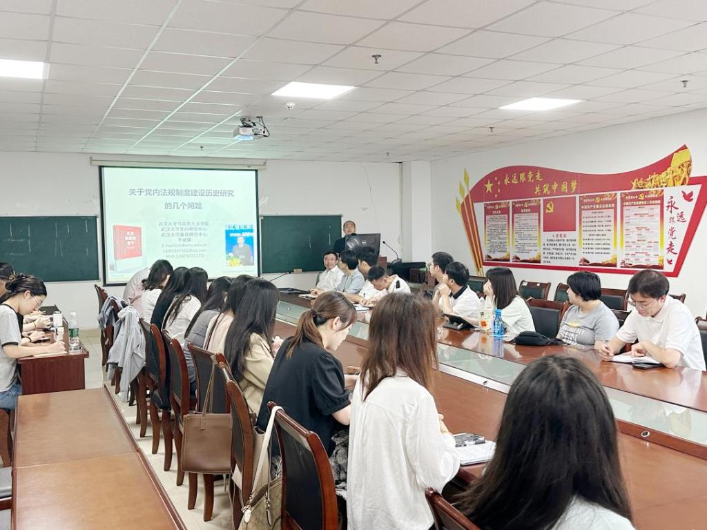 讲座伊始,“如何划分中国共产党党内法规建设的历史阶段?”、“中国共产党党内法规建设的历史经验主要有哪些?”李教授的提问,引发了与会师生的关注与思考。随后,他带领大家梳理了党内法规制度建设的系列重要著作、文献及语录摘编;围绕中国共产党党内法规制度建设的发展历程考察、历史经验总结以及历史特点分析和理论概括三个方面的内容阐述了自己的独到见解,并对问题进行逐一解答,对于帮助大家深入学习研究党内法规制度建设具有非常重要的的学术指导意义。