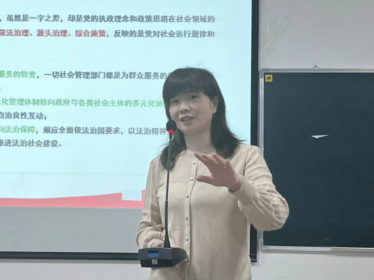 “社会治理是国家治理的重要组成部分。党的二十届三中全会对健全社会治理体系作出专门部署,是从完善共建共治共享的社会治理制度、推进国家安全体系和能力现代化的战略高度提出的一项重大任务。”肖慧教授首先介绍了讲座的背景,从“如何理解从社会管理到社会治理”这个问题入手帮助大家多维度理解社会治理。随后围绕“深刻认识健全社会主义治理体系的重要意义”、“扎实抓好健全社会治理体系重点任务的落实”和“准确把握健全社会治理体系的基本要求”三方面内容进行了详细地讲解。
