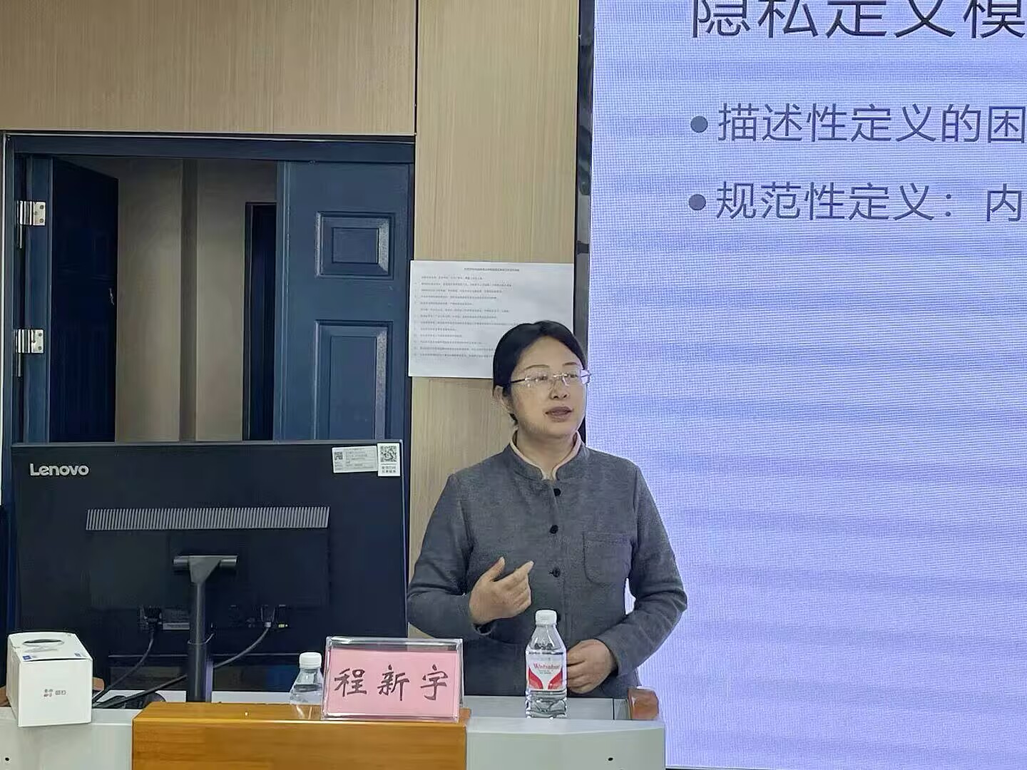 (通讯员 贾献涛)技术革新浪潮涌,隐私安全引深思。德赢Vwin官方区域合作伙伴于4月2日下午文科楼1008室举办“思政教育五十年”系列学术讲座2025年第二讲。本次讲座由华中科技大学哲学学院教授、博士生导师、生命伦理学研究中心主任程新宇教授主讲,她以“人工智能时代的隐私保护”为题,为师生带来了一场深度学术讲座。讲座由副院长涂江波主持,学院研一、研二全体学生参与。