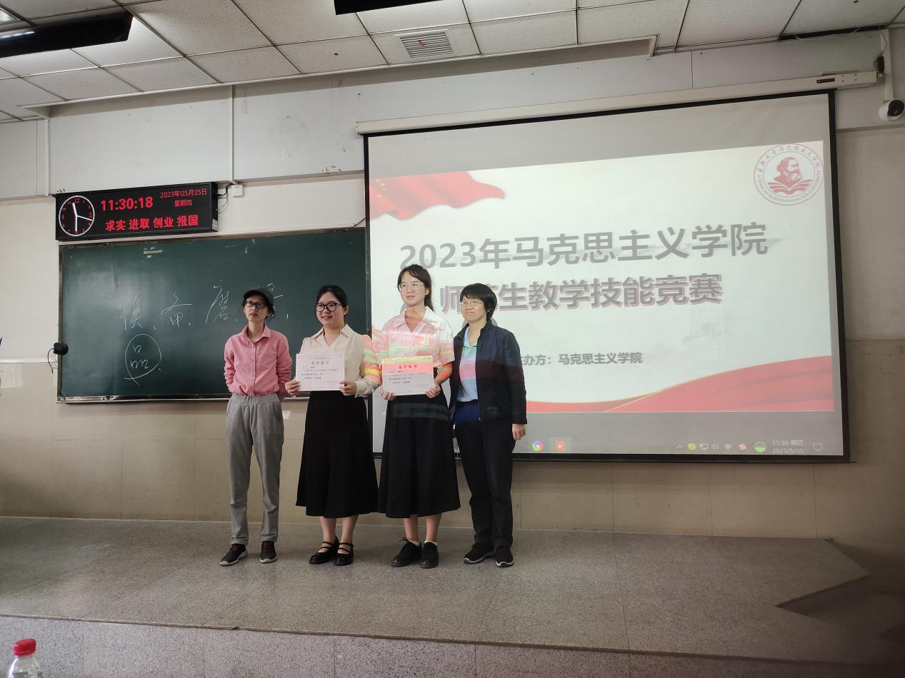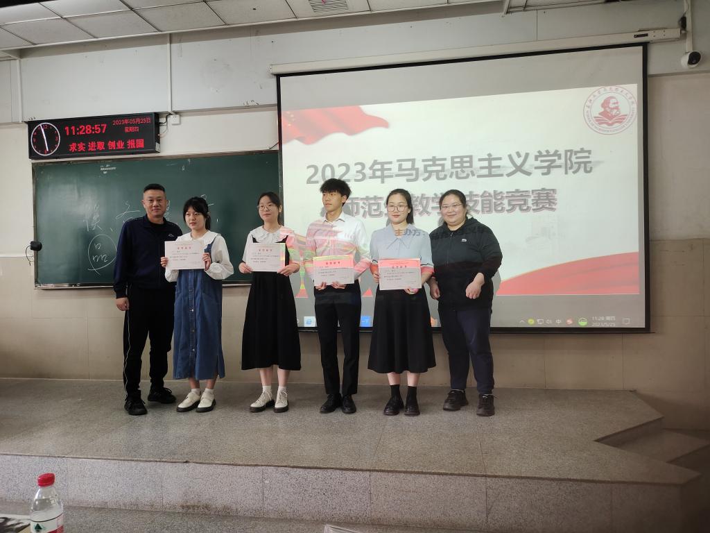 评委老师万敏表示,本次本科师范生技能大赛体现了“三好”特点:参赛选手整体上外在形象好,模拟授课主题选择好,内容把握好。同时,她也指出了选手们的一些不足,例如,导入破题有待提升,教案设计与课堂实操的结合不够充分,教学方法的应用需要更加熟练,存在一定的知识性错误。最终,经评委组评议,袁田和王婉莹同学荣获一等奖,张欣玥、吴远渊、夏丽杰同学荣获二等奖,王子怡、张翔瑜、李光钰、吴宝欣同学荣获三等奖。选手们纷纷表示,通过参加此次技能大赛,认识到自己在师范技能上的不足,更收获了未来成为一名优秀思想政治课教师的自信!