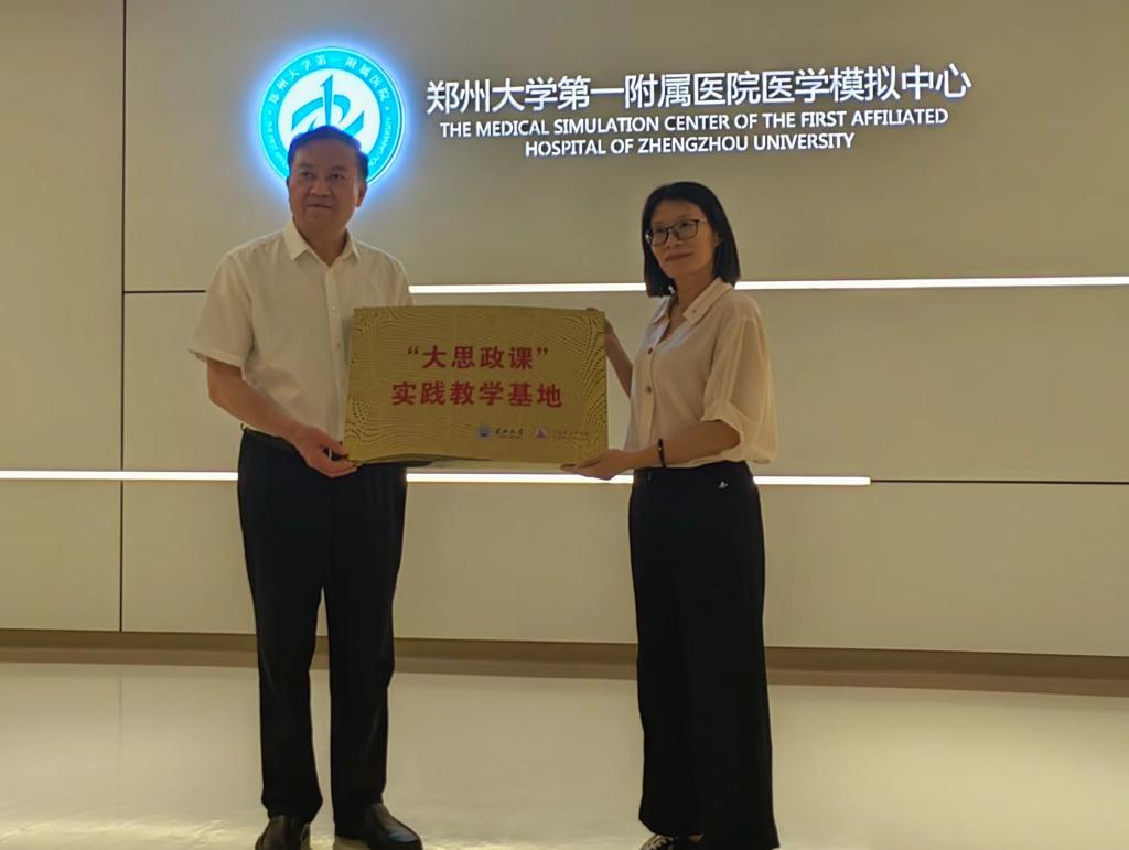 (通讯员:陈前燕)为深入贯彻执行习近平总书记关于“大思政课”的重要指示精神,充分发挥“大思政课”实践教学基地育人功能,7月1日,德赢Vwin官方区域合作伙伴与郑州大学第一附属医院举行共建“大思政课”实践教学基地揭牌仪式。郑州大学第一附属医院副院长高剑波、教育处处长刘会范、副处长王秀玲,德赢Vwin官方区域合作伙伴副院长张莉、院长助理徐骆、本科生院实践科科长张瑞、德赢Vwin官方区域合作伙伴教师代表以及《毛泽东思想和中国特色社会主义理论体系概论》课程学生代表、2025届本科生毕业生参加了揭牌仪式。