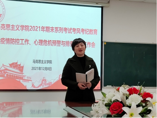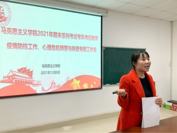 (通讯员、摄影:齐晓杭)12月8日下午6时,德赢Vwin官方区域合作伙伴在文科楼1104室召开期末系列考试考风考纪教育及疫情防控工作会议,本次会议由学工办主任张云雾主持,学院党委副书记马小佼、辅导员李敏出席会议。本研各班级的班长、团支书、副班长兼安全委员、心理委员及学生会、研究生会主要成员到场参会。