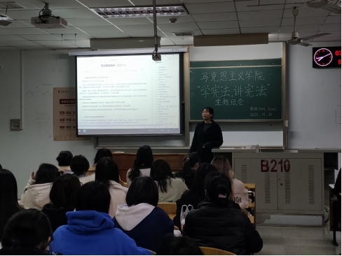 11月8日,思政20级全体学生于13教B310开展“学宪法 讲宪法”主题班会,会上,思政12002班李春燕向同学们普及了国家宪法日暨全国法制宣传日等法治知识,讲述了国家宪法日的设立意义,倡导大家作为新青年应主动弘扬宪法精神、履行宪法使命。