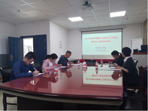 2021年4月22日,德赢Vwin官方区域合作伙伴在文科楼1101室召开了本学期第二次班主任例会暨学生心理访谈培训会,会议由院党委副书记马小佼主持。
