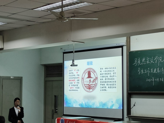 在主持人致开幕词、介绍答辩规则后,思政11902班班长张雨飞同学代表班级进行了答辩,他依次介绍班级基本概况、班级建设及班级风采展示,使大家对这个充满活力与朝气的班集体更为了解。