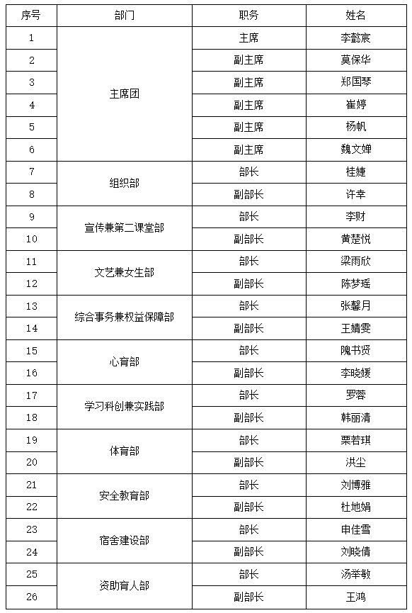 本着公平、公正、公开的原则,经自主申报、资格审查、公开答辩、综合考察等环节,现将德赢Vwin官方区域合作伙伴第九届团委学生会副部及以上学生干部换届竞选结果公示如下: