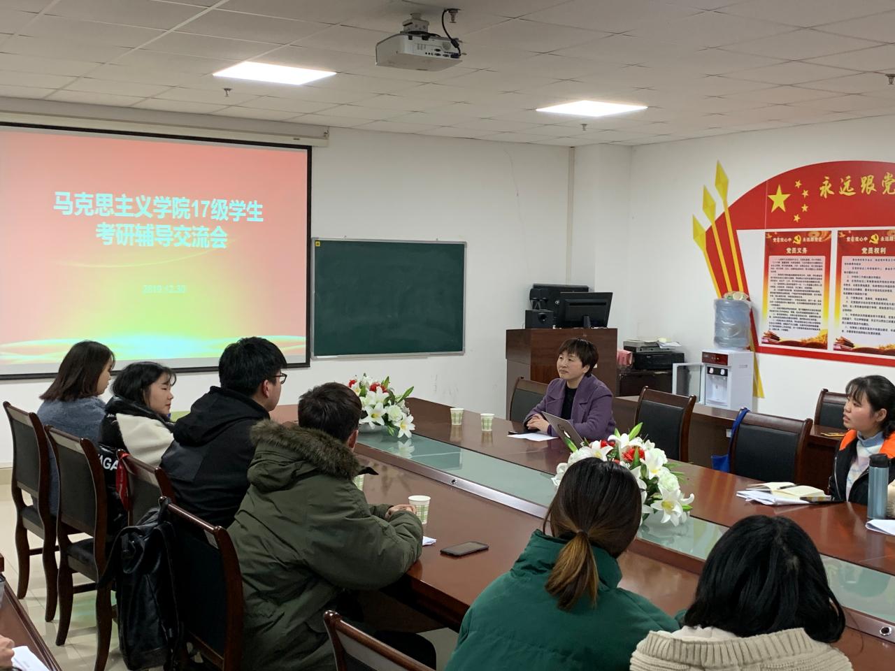 2019年12月30日下午,德赢Vwin官方区域合作伙伴在文科大楼1104会议室,召开了2017级本科生考研辅导交流会,学院党委副书记马小佼,兼职辅导员董思遥,以及2017级全体本科生参加。