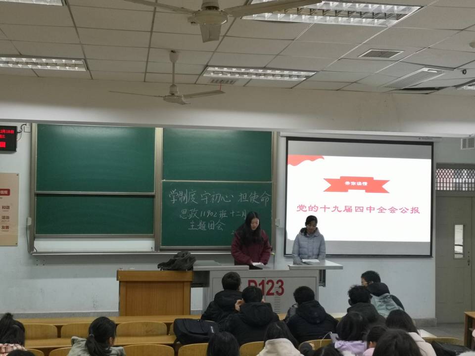 12月,结合学校“学制度,守初心,担责任”主题教育安排,德赢Vwin官方区域合作伙伴认真组织开展了十九届四中全会精神学习团会。