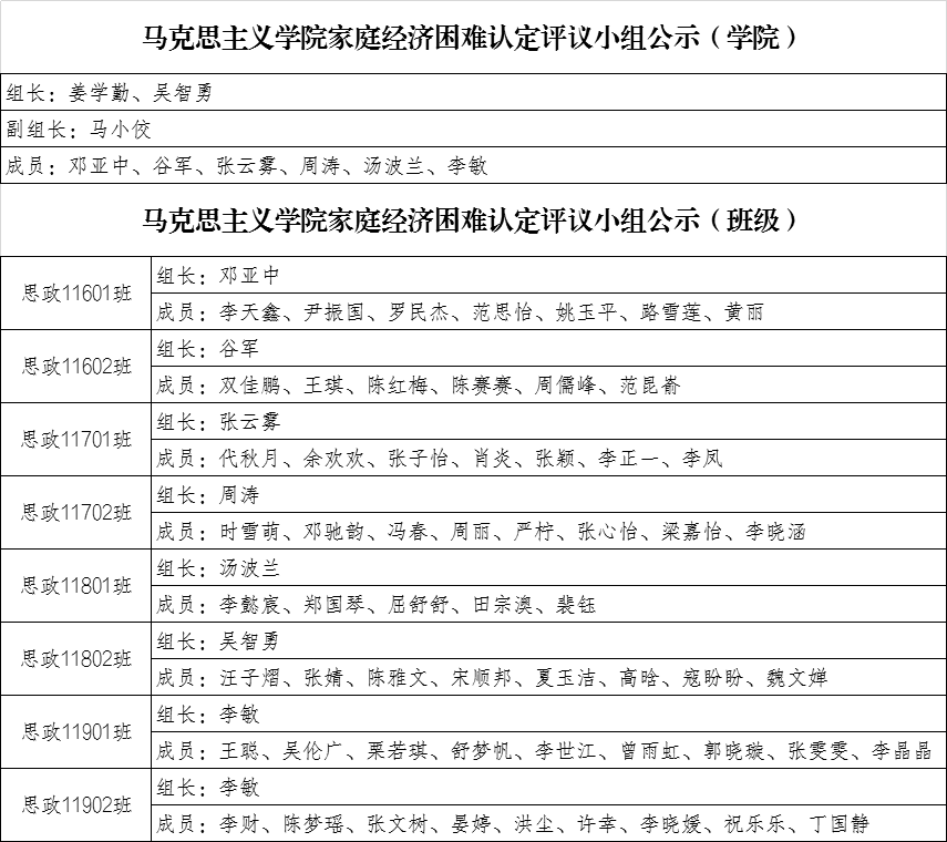 【信息公示】德赢Vwin官方区域合作伙伴家庭经济困难认定评议小组名单