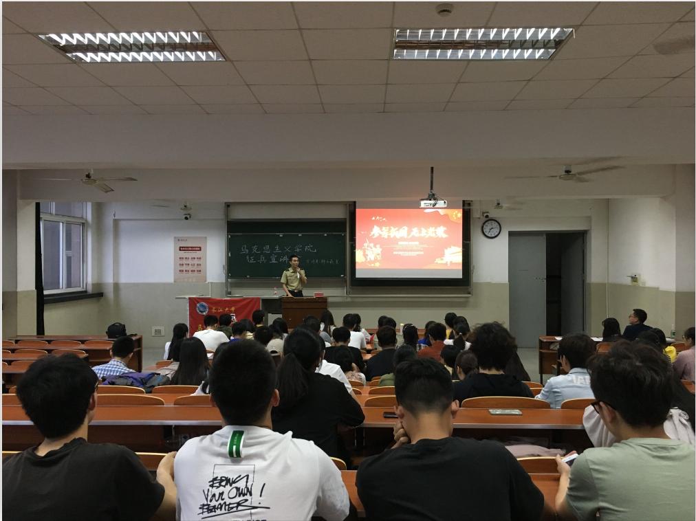 (通讯员:邱诗琪)5月22日晚7时,德赢Vwin官方区域合作伙伴征兵宣讲会在主教207顺利举行,来自城建学院的2016级退伍老兵韩王戴贤同学担任宣讲员,征兵专干李敏老师和各年级学生代表参加了宣讲会。