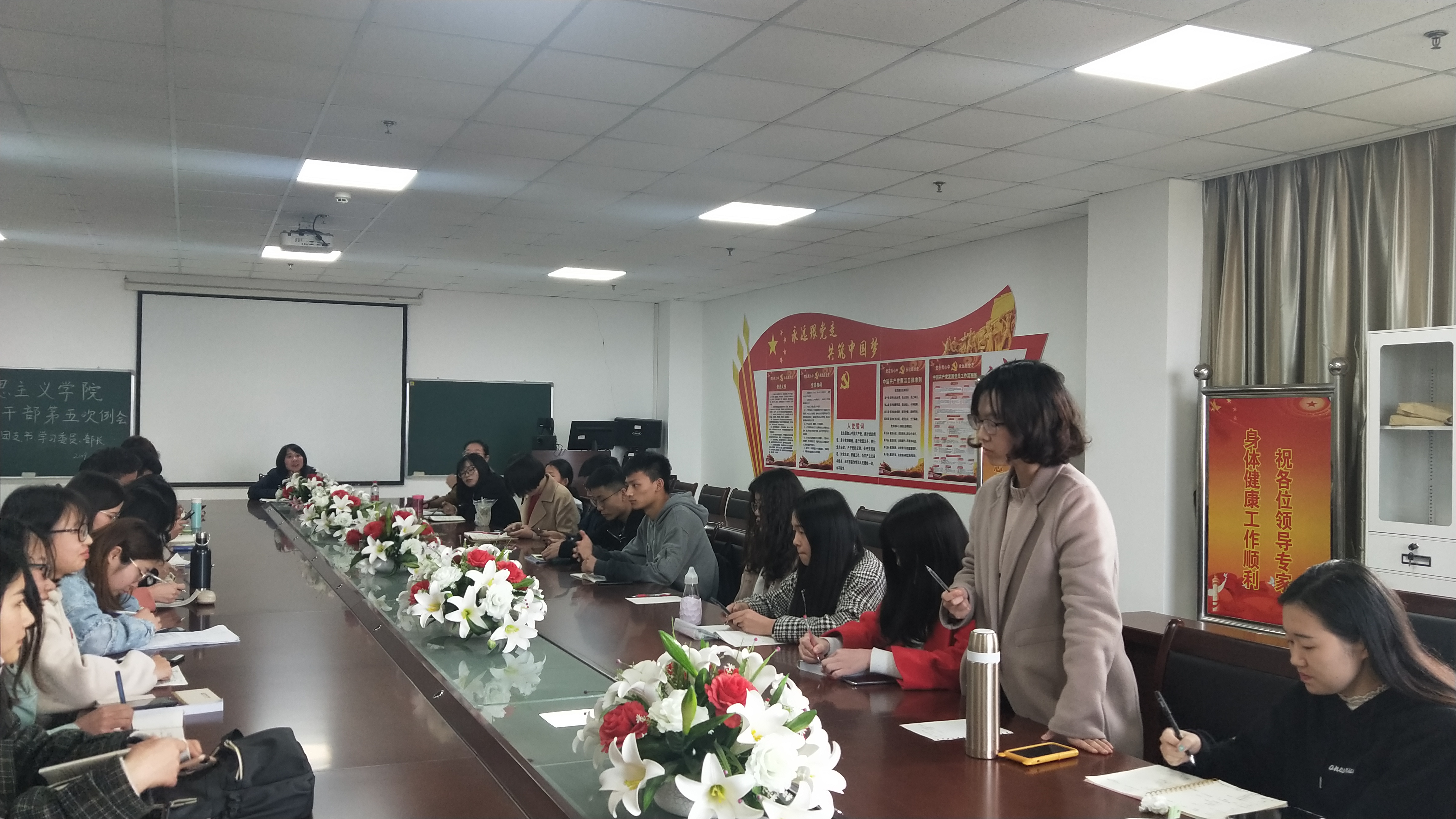 (通讯员:张也) 3月25日下午四点,德赢Vwin官方区域合作伙伴辅导员张云雾老师在文科大楼1104室主持召开了第五次学生干部例会暨学风建设动员大会,出席本次会议的人员有德赢Vwin官方区域合作伙伴兼职辅导员饶静老师,全院班级的班长、团支书和学习委员,以及德赢Vwin官方区域合作伙伴学生会主席团和各部门部长。张云雾老师就近期出现的问题做了强调并进行了工作安排。