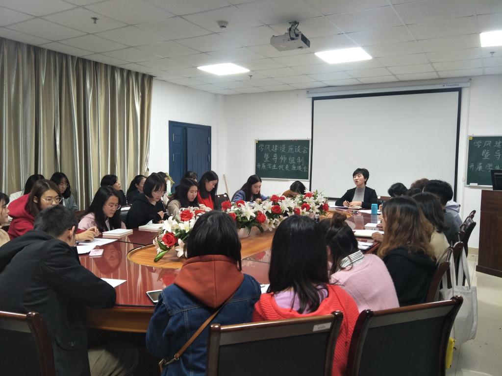 为进一步加强德赢官网的教学管理,培养优良的学风和教风,帮助学生更好地学习专业知识,提高自身的竞争实力以及针对18级学生即将开展导师组制的活动进行座谈,德赢Vwin官方区域合作伙伴于2018年11月5日下午3:50在文科大楼1125会议室召开学风建设座谈会暨导师组制开展座谈会。参加会议的人员有马院党总支副书记马小姣老师,马院辅导员张云雾老师,马院兼职辅导员饶静老师,学生会主席团,各班干部代表,大一至大四各寝室长,心育部全体成员及研究生各班级学生安全联络员。