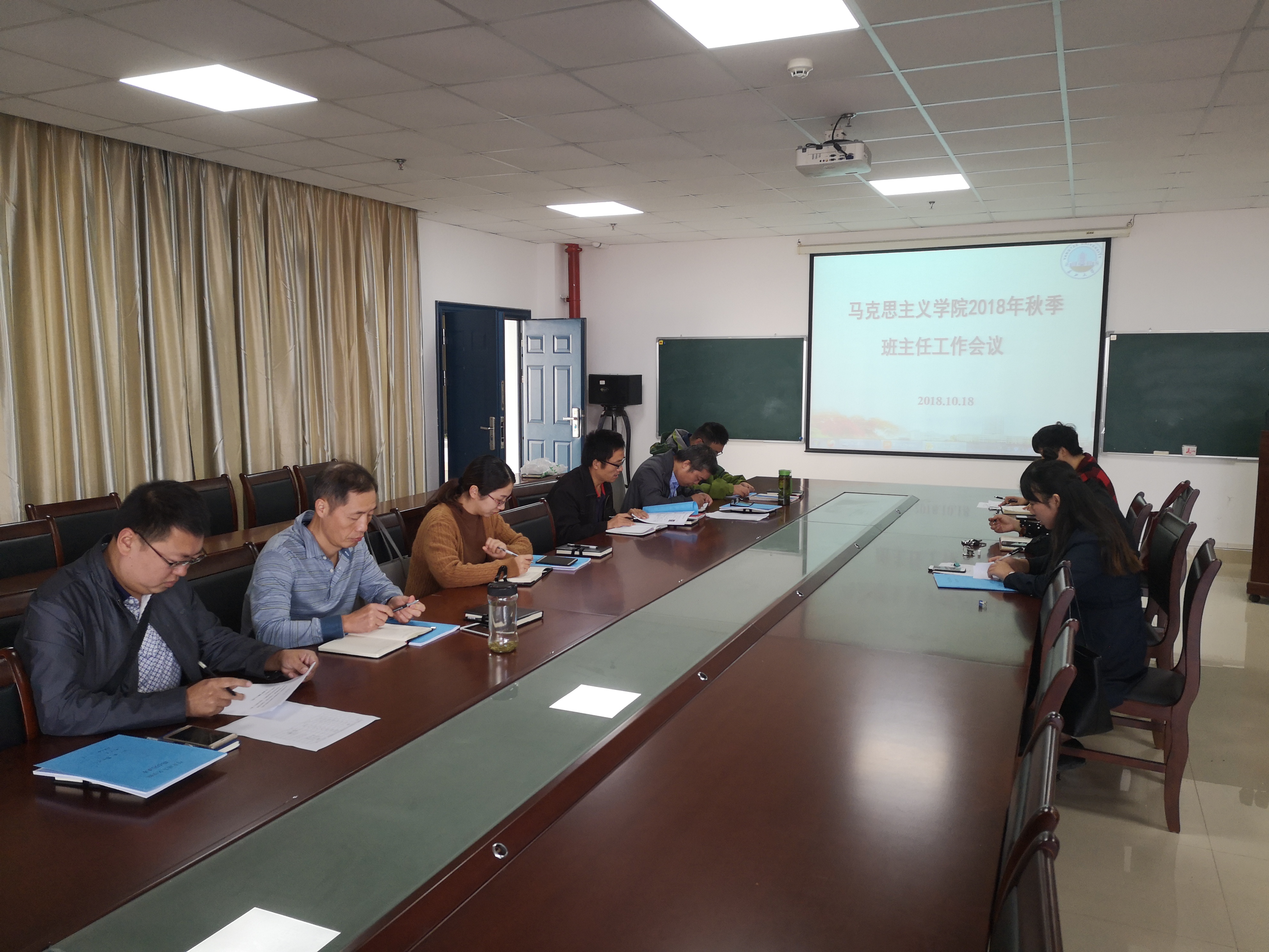 德赢Vwin官方区域合作伙伴于10月18日下午2点在文科楼1104会议室召开本学期第一次班主任工作会议。参加本次班主任会议的有德赢Vwin官方区域合作伙伴党委书记吴智勇老师、德赢Vwin官方区域合作伙伴党委副书记马小佼老师以及马院全体班主任。会议由德赢Vwin官方区域合作伙伴党委副书记马小佼老师主持。
