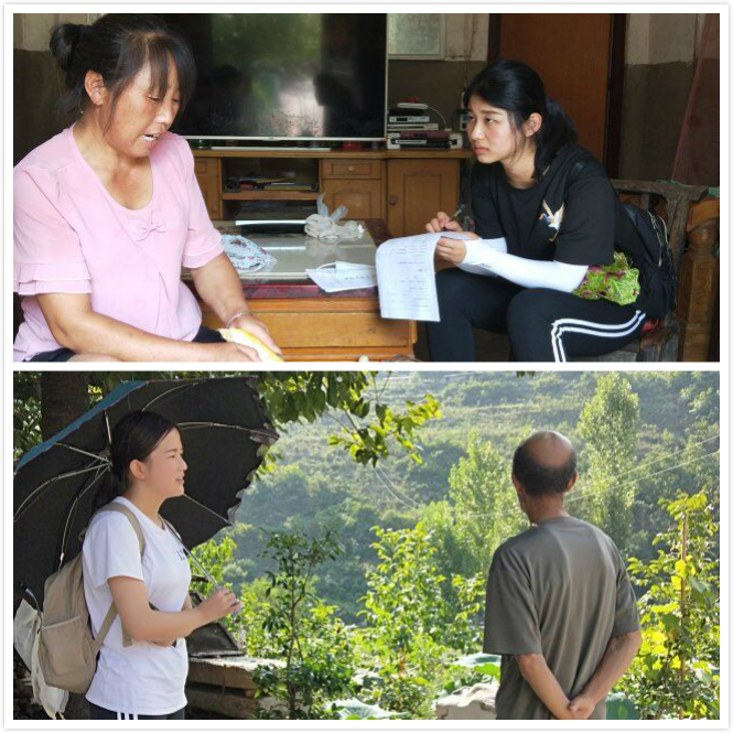 在房县的青峰镇,实践队分成两个小队分别前往红庙村、楼房村和青峰村进行走访。队员们背着问卷和小礼品,顶着炎炎烈日穿梭在山野之间。当天的调研活动直到晚上7点才结束,两队队员徒步将近二十公里,走访了40余户人家,完成了50余份问卷的发放和4次的深入访谈。