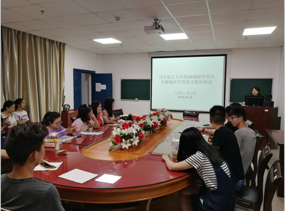 为加强2018届毕业生对生源地助学贷款还款的了解、诚信还贷,5月18日,马克思主义学院“2018届毕业生生源地助学贷款还款培训会”在文科大楼1125室举行。本次培训会由德赢Vwin官方区域合作伙伴辅导员张云雾老师主讲,全体在校毕业生参加了会议。