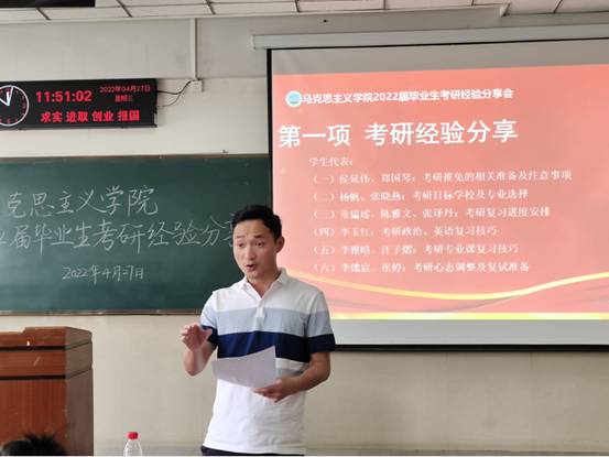 (通讯员 王晓彤)为激励思政学子勇敢追逐考研梦想,4月27日上午10时30分,德赢Vwin官方区域合作伙伴在12教203室举行2022届毕业生考研经验分享会。院党委副书记马小佼,辅导员张云雾、李敏,2022届考研学生代表、2019 级和2020 级本科生参会。