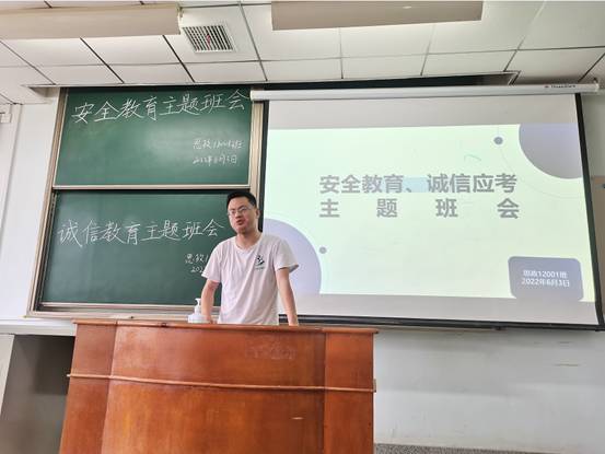 本次班会组织从防溺水安全教育、疫情防控教育、反诈骗安全教育、诚信应考及考风考纪教育四个方面进行开展。主讲人刘玉玲给大家播放了溺水事故相关视频并讲授了相关安全常识及溺水自救方法。并强调了学校疫情防控要求,督促同学们按时打卡、按要求进行核酸等。在安全教育部分的最后,大家一起学习了反诈骗相关知识,了解了诈骗团伙常用套路与相关反诈措施。主讲人王子怡向大家强调了诚信考试规范,带领同学们学习了德赢Vwin官方区域合作伙伴违纪处分办法,并就如何在考试中保持良好心态向大家传授了相关技巧。最后,各位同学共同签署了诚信考试承诺书。