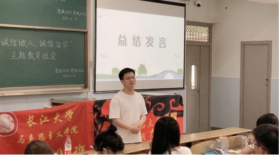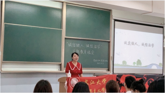 6月3日上午,德赢Vwin官方区域合作伙伴思政12101班与思政12102班联合开展了“诚信做人,诚信治学”主题班会。本次班会围绕安全教育和诚信教育两大主题开展。班会邀请了班主任何波老师和辅导员张云雾老师莅临指导。
