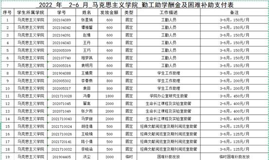 因工作需要和家庭经济困难情况,经学生本人申请,学院审核,现将德赢官网2021-2022学年第二学期勤工助学酬金及困难补助发放情况公示如下: